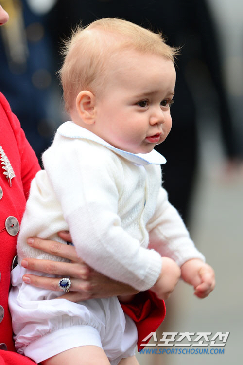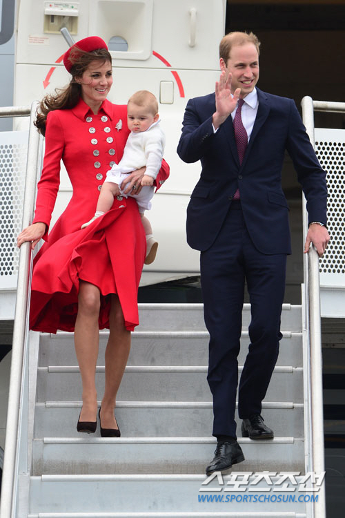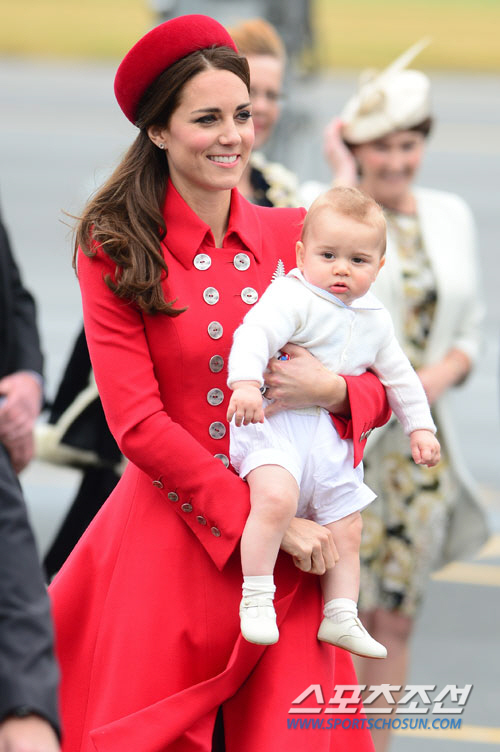 단연 눈에 띄는 것은 조지 왕자. 지난해 7월 22일생인 조지 왕자는 9개월만에 해외순방에 함께 했다. 붉은색 트렌치 코트를 입은 케이트 미들턴 비의 미모도 시선을 사로잡았다.