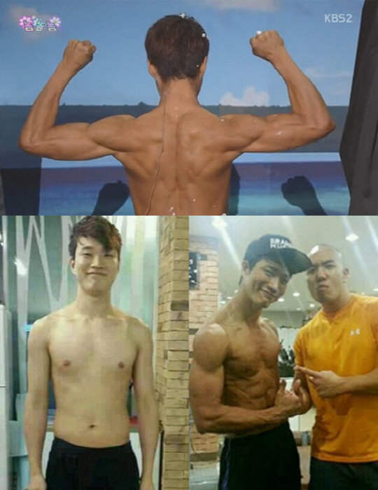 김기리는 6일 방송된 KBS 2TV '개그콘서트'의 '놈놈놈'에 출연해 상반신을 노출, 쩍 갈라진 근육 몸매를 선보였다.