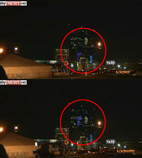 고층 빌딩을 화면으로 이용해 테트리스 게임을 즐기는 광경이 펼쳐졌다.