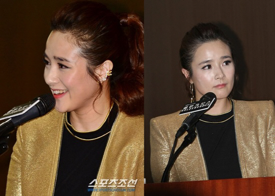 이날 현장에 자리한 김보민은 반짝이는 소재의 황금색 의상과 귀걸이로 취재진들의 시선을 한 몸에 받았다.
