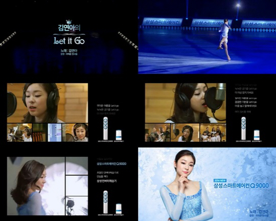 영상 초반에는 흰 드레스를 입은 김연아가 다양한 표정 연기를 펼치며 눈길을 사로잡았다.이후 김연아는 어린이 합창단 '귀여운 천사들'과 영화 '겨울왕국'의 주제곡인 '렛잇고'를 불렀다.