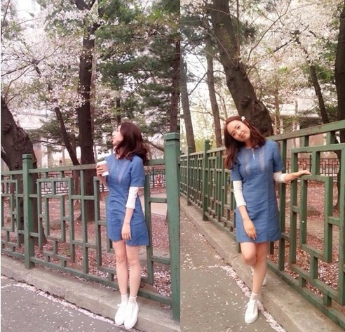 이어 편안한 파란색 원피스 차림의 김민정은 벚꽃을 배경으로 한쪽 귀에 벚꽃을 꽂은 채 카메라를 향해 깜찍한 포즈를 취하고 있어 시선을 집중시켰다.