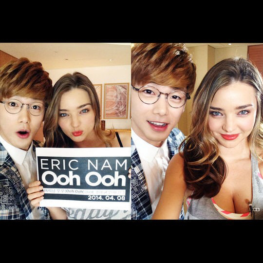 가수 에릭남이 세계적인 톱 모델 미란다 커와 찍은 셀카를 공개했다.