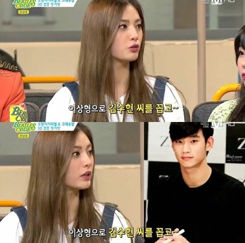 이어 나나는 "내가 예전에 이상형으로 김수현 씨를 언급한 적이 있다"면서 KBS 2TV 드라마 '드림하이' 전부터 김수현의 팬이었음을 밝혔다.