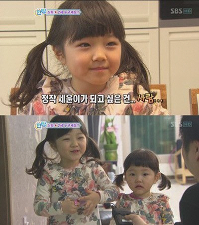 이와 함께 정웅인의 첫째 딸 정세윤에 대한 관심도 높아지고 있다. 정세윤은 할리우드 스타 톰 크루즈의 딸 수리 크루즈를 쏙 빼닮은 외모 때문에 '한국의 수리 크루즈'로 불리며 많은 인기를 끌고 있다. 아빠 정웅인과 함께 종종 방송에 모습을 드러내며 깜찍한 매력을 과시하기도 했다.