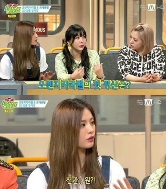 첫 정산을 묻는 질문에 레이나는 "700만원 정도 받았다"고 답했고, 나나와 리지는 "1000만원 정도를 받았다"며 "오렌지캬라멜과 애프터스쿨을 같이 하고 있어서 정산을 따로따로 한다. 또 개인 활동은 개인이 가져간다"고 수입 구조를 설명했다.