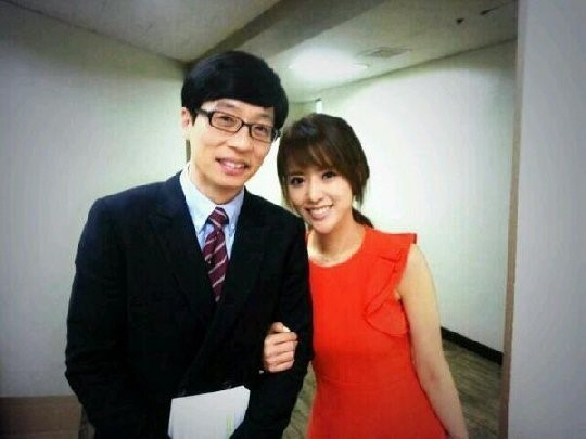 사진 속 유재석과 정지원 아나운서는 팔짱을 낀 다정한 포즈로 친분을 과시해 시선을 모은다.