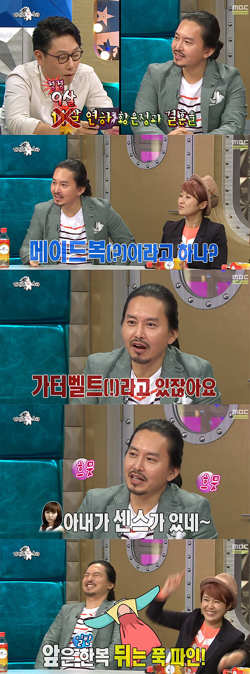 이에 김구라는 "아내가 센스가 있다"고 칭찬했고, 윤종신은 "한복도 설날 때 입는 한복이 아닌 거 같다"고 의심했다. 이를 들은 송은이는 "앞은 한복인데 뒤는 푹 파인 거 아니냐"고 짓궂게 물었다.