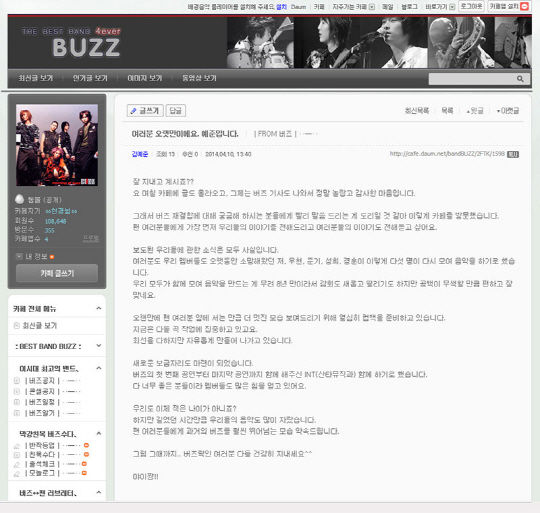 버즈는 지난 2003년 아이돌 밴드로 혜성같이 데뷔하여, '어쩌면', '모놀로그', '겁쟁이', '가시', '나에게로 떠나는 여행', '남자를 몰라', '사랑은 가슴이 시킨다', '레츠고 투게더' 등 2007년까지 3장의 앨범을 내며 각종 차트를 휩쓸었으나 2007년 맴버들이 팀을 탈퇴하며 기타 윤우현과 새맴버 민대홍으로 2인밴드로 활동했었다. 지금은 두 맴버 마저 지난해 소속사와 계약이 종료되어 사실상 해체됐다. 이정혁 기자 jjangga@sportschosun.com