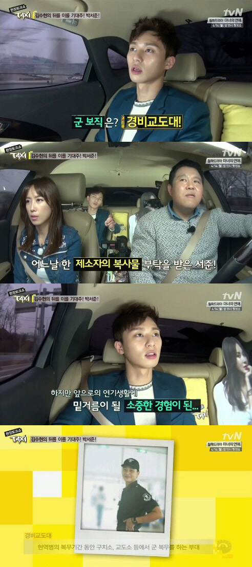 이날 박서준은 과거 군시절을 언급하며 "군 복무를 교도대에서 했는데 난 내가 헌병으로 빠질 줄 알았다. 하지만 청주교도소로 배정 받았다"라면서 "엄마가 면회 오려면 교도소로 와야 되는구나 생각했다"고 말했다.
