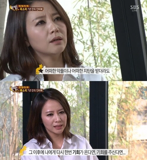 앞서 옥소리는 지난 2007년 전 남편 박철과 이혼 후 7년 간 활동을 중단했다가 최근 복귀의사를 밝히며 방송에 모습을 드러냈다.