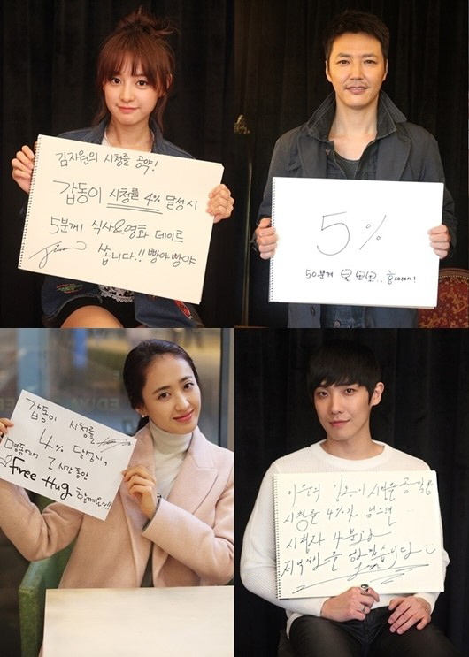 11일 tvN 새 금토드라마 '갑동이'(극본 권음이 연출 조수원) 측은 출연배우 윤상현, 김민정, 이준, 김지원의 각양각색 시청률 공약을 공개했다.