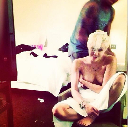 美 '국민 여동생' 마일리 사이러스가 아찔한 노출 사진을 공개해 눈길을 끌었다.