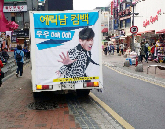 팬들의 응원, 홍보 차량까지. 에릭남, 컴백 앞두고 홍보차량 눈길