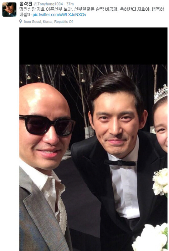 12일 홍석천은 자신의 트위터에 "멋진 신랑 지호 이쁜신부 보아. 신부 얼굴은 살짝 비공개. 축하한다 지호야. 행복하게 살아"라는 글과 함께 사진을 게재했다.