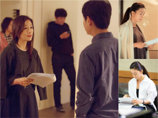 사진 속 김희애는 서 있거나 또는 쇼파에 꼿꼿이 앉은 모습으로 대본읽기에 열중해 보는 사람의 시선을 집중시킨다. 빡빡한 촬영 스케줄 속에 잠깐의 휴식시간일텐데도 흐트러짐 없는 모습으로 대본읽기에 매진해 나태해지지 않는 진정한 프로의 자세를 보여준다.