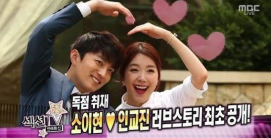 두 사람은 13일 오후 방송된 MBC '섹션 TV 연예통신'에 동반 출연했다. 이날 방송에서 두 사람은 "어떻게 만났냐"는 질문에 "교제로 이어진 것은 얼마되지 않았다"고 답했다. 이어 소이현은 "교복을 입었을 때부터 알고 지낸 사이"라며 "학교 앞에 차를 대고 인교진이 데리러 왔다. 같이 학원을 다녔다"고 말했다.