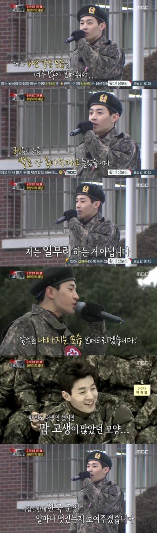 이어 그는 "얼음 계곡도 힘들었고 한국말도 너무 어렵다"며 "하지만 한 가지 약속하겠다. 열심히 하는 군인 되는 군인 되겠다. 사람들에게 국군이 얼마나 멋있는 사람인지 보여주겠다. 열심히 하겠다. 맹호"라고 앞으로 있을 군대 생활에 자신감을 드러내 박수를 받았다.