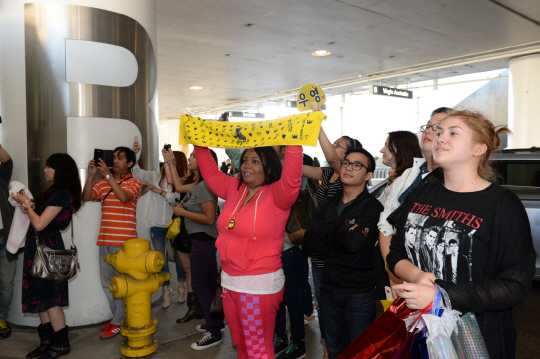 'LA코리아 페스티벌'에 대한 관심은 뜨거웠다. 티켓 오픈 30분 만에 5만 5000석의 좌석이 전석 매진됐고, 표를 구하지 못한 팬들 사이에서는 암표까지 거래됐다. 무료 공연 티켓 값이 암시장에서는 최대 500~600달러까지 치솟았다. 그 인기를 입증하듯 12일 오전 7시 30분부터 공연장에는 셀 수도 없이 많은 팬들이 운집했다. 이중에는 한국계 팬들 뿐 아니라 남미, 중국어권, 북미권 등 다양한 국적의 팬들도 대거 포함돼 눈길을 끌었다. 이들은 공연장을 겹겹이 둘러싸고 가수들이 지나갈 때마다 플래카드를 들고 응원에 열을 올렸다.
