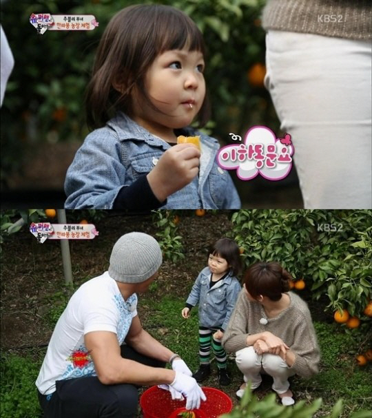 이날 한라봉 농장에서 한라봉 따기 삼매경에 빠진 추성훈 가족은 한라봉을 따 바구니에 한가득 담았다. 추성훈은 딸 사랑이의 얼굴 크기 만한 한라봉을 골라 사랑이에게 줬다.