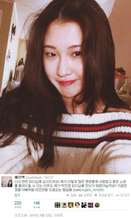 그룹 '15&'의 백예린이 소속사 사장이자 프로듀서 박진영에게 감사 인사를 전했다.