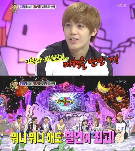 이날 방송에서 9개월간 60번의 가요제에 출전한 아이돌 지망생 유부녀의 사연을 소개하던 정찬우는 게스트들에게 가수가 되기 위해 노력한 점이 무엇이냐고 물었다.