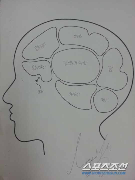 하하. 이게 제일 힘드네요. 운동이요. 이제 쉬는데 운동 열심히 해야죠. 근데 배우가 차기작보다 '맛있는 거 먹기'를 더 큰 칸에 써도 되는건가요. 하하.