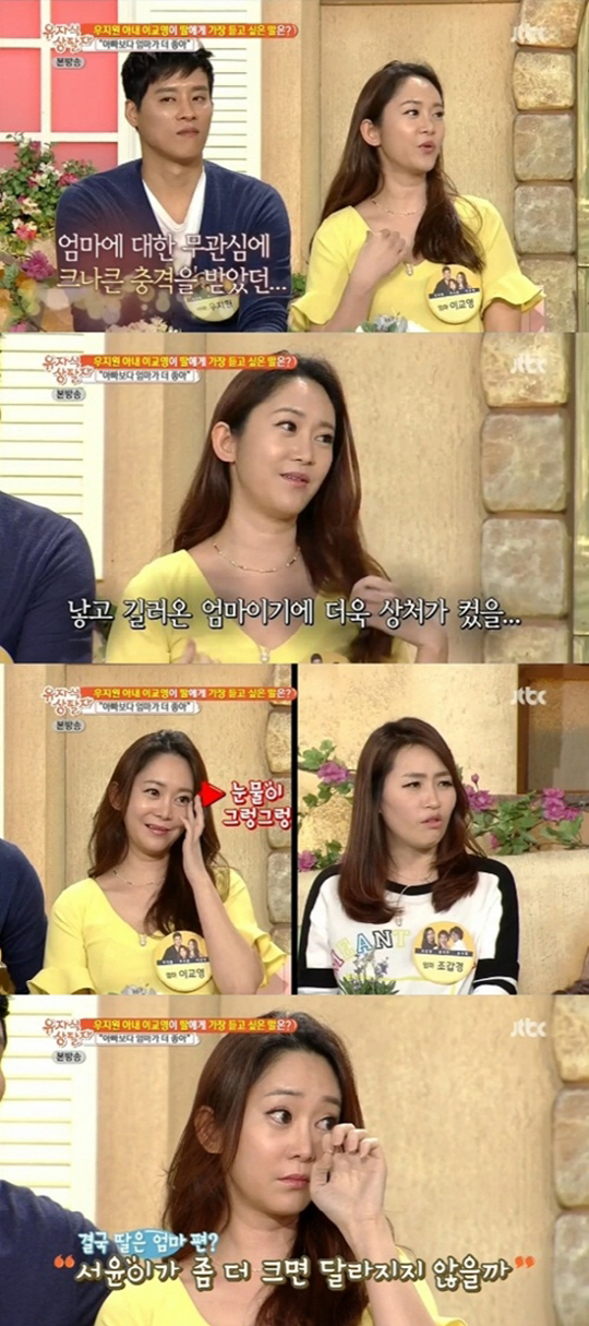 전 농구선수 우지원 아내 이교영이 눈물을 보였다.