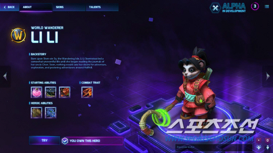 이번에 새롭게 공개된 4개의 캐릭터 중 현장에서 직접 시연해볼 수 있었던 영웅 중 하나는 '워크래프트' 시리즈에서 불가사의한 종족으로 관심을 모았던 판다렌의 모험심 넘치는 소녀 '리 리'이다. 리 리는 유랑도 출신인 스톰스타우트 가문의 일원으로 아제로스로 여행을 떠난 판다렌의 영웅 첸 스톰스타우트의 조카이다. '월드 오브 워크래프트: 판다리아의 안개'에서 첸과 함께 판다리아를 여행하여 네 바람의 계곡에서 주로 만날 수 있었던 리 리는 '히어로즈'에서도 귀여운 매력을 유지하며 지원형 영웅으로 활약한다.