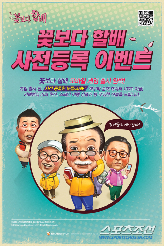 드래곤플라이는 모바일게임 '꽃보다 할배'의 사전등록 이벤트 참가자 수가 5만명을 넘어섰다고 밝혔다.