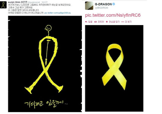 22일 배우 심은진은 SNS를 통해 자신이 직접 그린 '노란리본' 그림을 공개하며 캠페인에 참여하는가 하면, 빅뱅 멤버 지드래곤 역시 노란리본 그림을 게재했다.