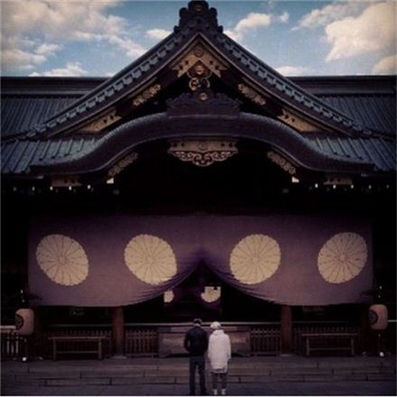공개된 사진 속에는 일본 도쿄 야스쿠니 신사에서 고개를 숙이고 있는 비버와 지인의 뒷모습이 담겨 있다.
