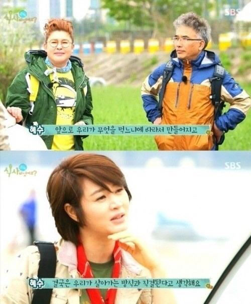 이날 김혜수는 여행 전 한강 둔치에서 방랑식객 임지호, 이영자와 만나 인사를 나누면서 식사와 관련한 본인의 생각을 말했다.