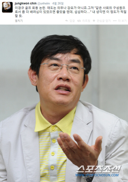 방송인 이경규가 골프 회동 논란에 휩싸인 가운데 진중권 동양대 교수가 자신의 생각을 밝혔다.