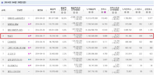'한공주'는 한국 독립영화 극영화 최다관객수를 기록한 '지슬-끝나지 않은 세월2'의 최종 스코어 14만4490명을 개봉 12일 만에 넘어섰다. '한공주' 측은 '스크린 수는 줄었지만 오히려 관객수에서는 상승세를 보이고 있다'고 설명했다.