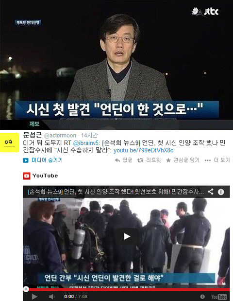 이어 "(우리가) 특수 제작한 해머를 들고 3개조 6인의 잠수부를 투입해 3명의 실종자를 인양하고 1명을 추가로 찾았다"며 "지금 언딘은 악조건 속에도 목숨 걸고 사투 중이다. 이번 보도의 충격으로 구조 차질이 우려된다"며 정정 보도를 요구하며 JTBC 보도와 관련해서는 법적 대응을 시사했다.