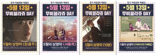 5월 무비꼴라쥬데이는 '한국독립영화 특별전'으로 꾸몄다. 상영작으로는 '한공주', '10분', '셔틀콕', '아버지의 이메일' 등 국내외 유수의 영화제에서 상을 휩쓸며 작품성을 인정받은 영화 4편을 선정했다.