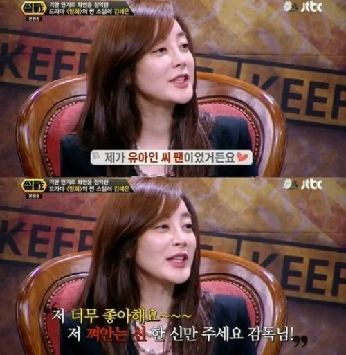 이날 김혜은 함께 출연 중인 유아인의 팬임을 자처하며 "유아인이 캐스팅이 됐다고 했을 때, 일부러 감독님께 전화해서 '저 유아인 씨 너무 좋아해요. 껴안는 신 하나만 넣어 주세요'라고 말했다"고 밝혀 눈길을 끌었다.