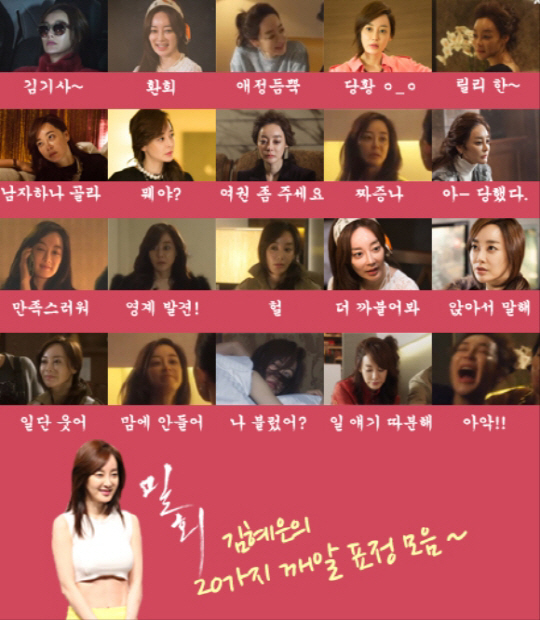 JTBC 월화드라마 '밀회'(극본 정성주, 연출 안판석, 제작 드라마하우스, (주)퓨쳐원) 홈페이지에서는 이기적인 성격과 천방지축인 행동의 소유자 재벌2세 서영우 역을 맡아 열연 중인 김혜은의 극 중 다채로운 표정을 모아놓은 20가지 깨알 표정 모음 사진을 공개했다.