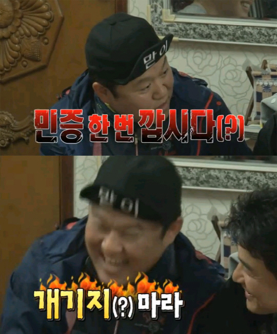 박중훈은 주민등록증을 확인해보자는 김구라에 "구라야 부탁이 있는데 개기지 마라"라며 돌직구를 날려 웃음을 자아냈다.