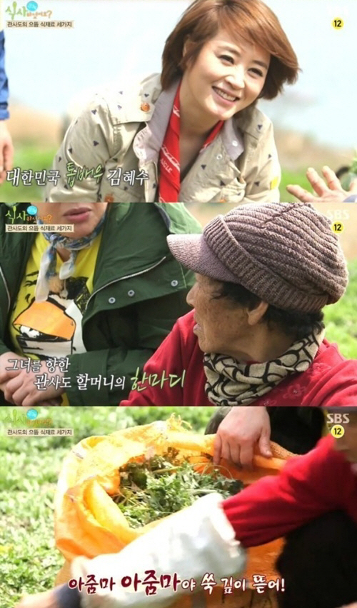 3일 방송된 SBS '잘 먹고 잘 사는 법, 식사하셨어요?'에서는 MC 이영자, 임지호와 함께 김혜수가 봄을 맞아 쑥으로 유명한 남도의 관사도로 떠났다.