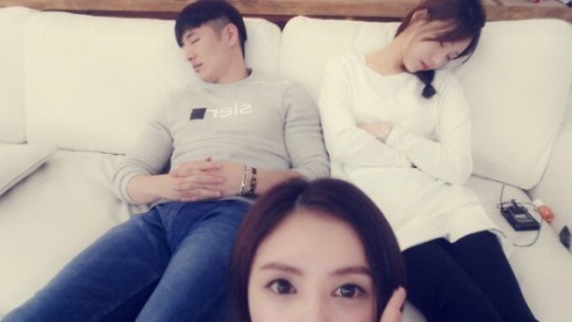 황영롱은 지난 4일 자신의 트위터에 "잠에 취하신 손호영 그리고 천이슬 씨"라는 글과 함께 소파에서 함께 잠에 든 두 사람의 사진을 게재했다.