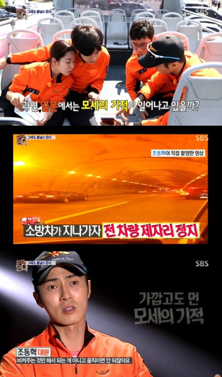 이날 멤버들은 '모세의 기적'을 홍보하기 위해 부산 시티투어 버스로 이동하며 대화를 나눴다. '모세의 기적'이란 긴급 환자가 구급차로 이송될 때 주변의 차가 구급차가 지나갈 수 있도록 길을 확보해주는 것을 말한다.