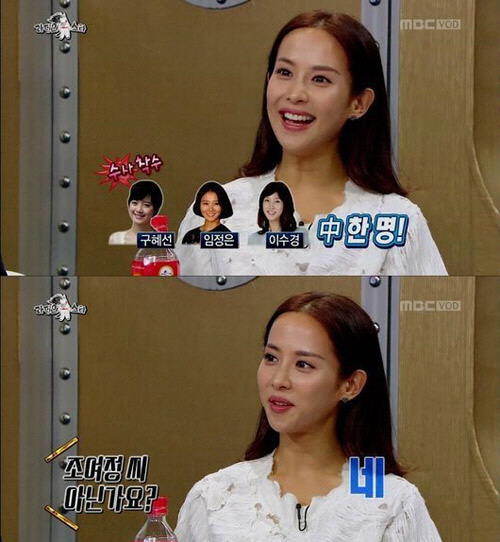 이어 MC 윤종신은 "조여정 씨의 한 마디가 확률을 30%로 줄일 수 있다"며 조여정에게 김지훈과의 스캔들의 주인공인지 아닌지 물었다.