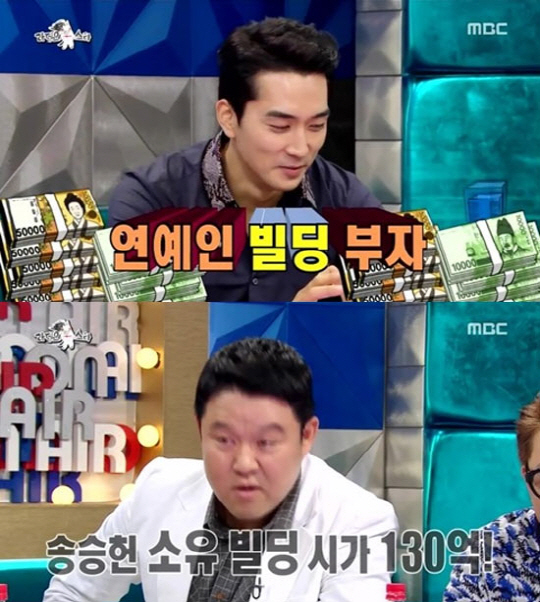 이날 MC 김구라는 송승헌에게 "2006년도에 구입한 빌딩이 시가 130억이라는 것이 맞냐"라고 질문을 던졌다.