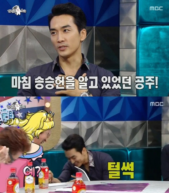 이날 송승헌은 태국 공주에게 무릎을 꿇은 사연에 대해 이야기했다. 영화 '무적자' 촬영 차 태국에 간 송승헌은 "한식당에 들어갔는데 직원들이 다 무릎을 꿇고 있더라. 주인아주머니가 태국 공주가 와 있다고 했다"라며 당시 상황을 설명했다.