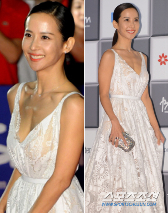 해당 사진은 지난해 열린 부산국제영화제 레드카펫 행사에 참석한 조여정의 모습으로, 그는 흰색의 시스루 드레스를 입고 포즈를 취하고 있다.