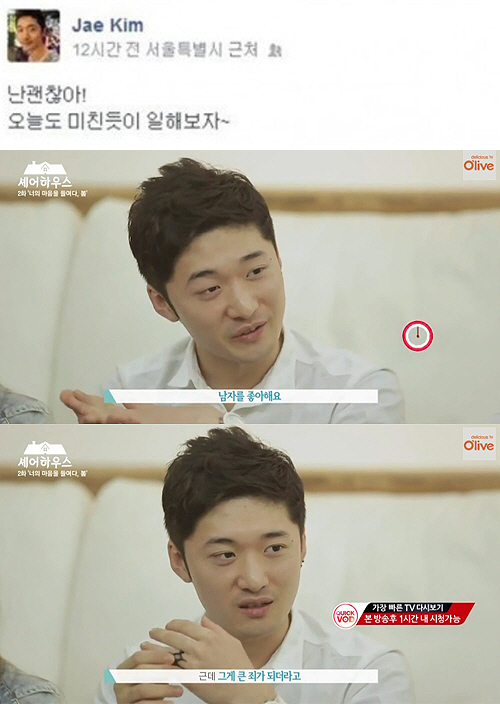 앞서 김재웅은 지난 7일 방송된 케이블채널 올리브 '셰어하우스'에서 자신의 성 정체성에 대해 의문을 품는 다른 식구들에게 커밍아웃했다.