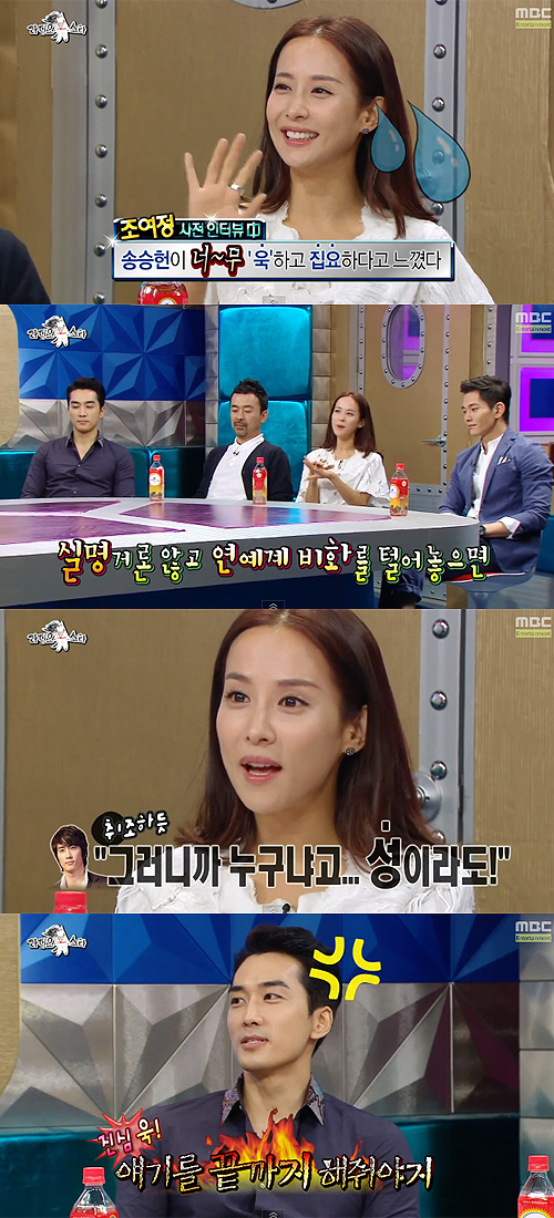 이날 MC 김구라는 "조여정이 사전인터뷰 때 '송승헌이 너무 욱하고 집요하다고 느꼈다'고 말했다더라"며 운을 뗐다.
