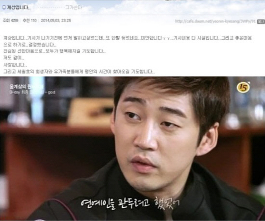 이에 윤계상은 자신의 팬가페를 통해 "기사보다 먼저 밝히고 싶었는데 또 한발 늦어 미안하다"며 팬들에 대한 미안함 마음을 내비치며 "선한 마음으로 하기로 결정했다"고는 심경을 밝혔다.